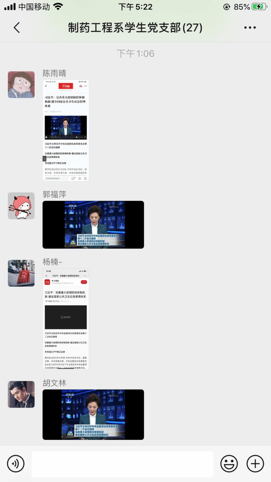习近平总书记指出,这次抗击新冠肺炎疫情,是对国家治理体系和治理能力的一次大考。要研究和加强疫情防控举措,健全国家公共卫生应急管理体系,提高应对突发重大公共卫生事件的能力水平。制药工程系学生党支部全体党员通过线上学习了全文并展开交流研讨。
