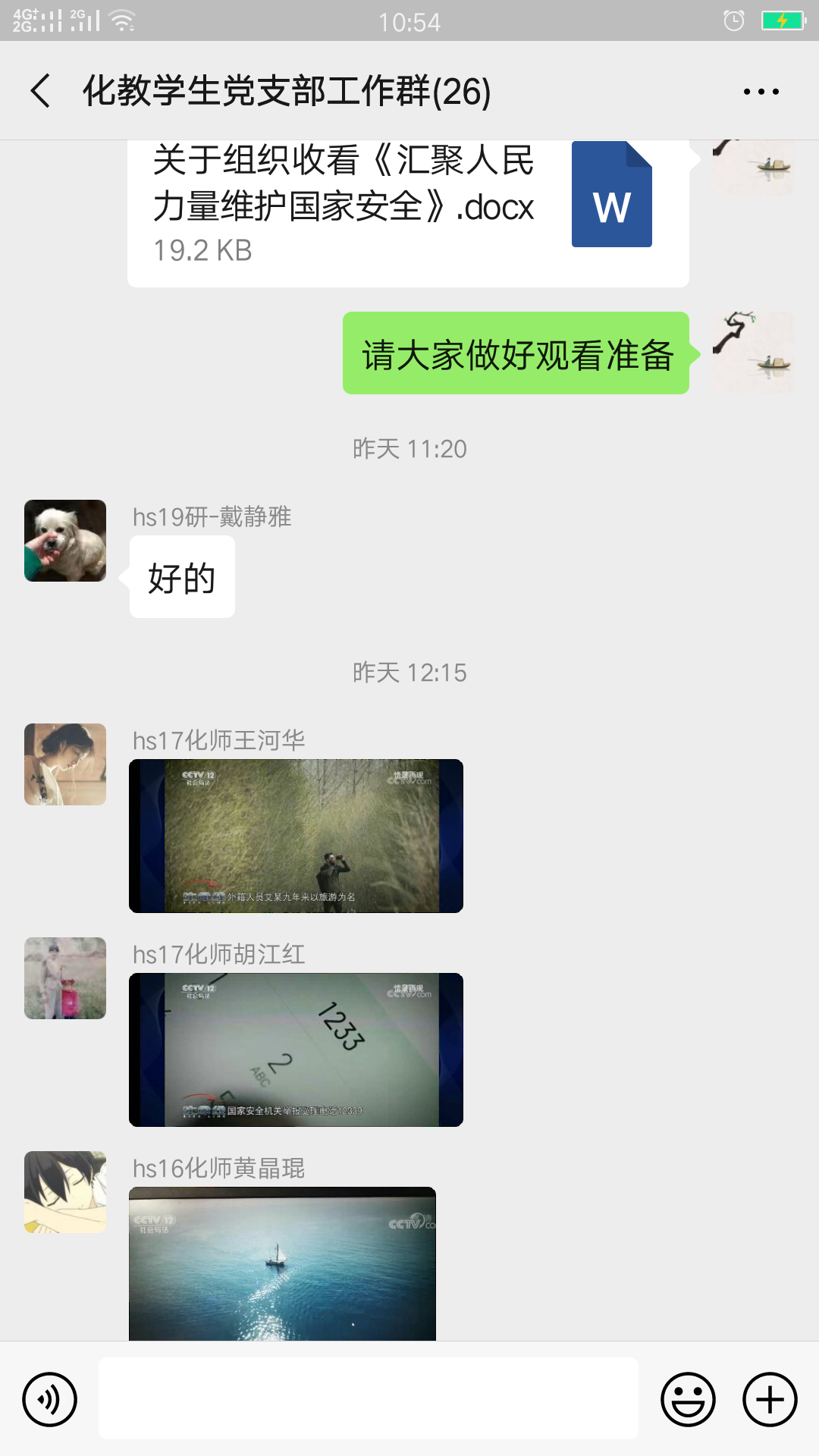 本网讯 4月15日为国家第5个全民国家安全教育日,认真学习国家安全专题宣讲,4月16日,化学教育系学生党支部组织全体党员观看《汇聚人民力量维护国家安全》专题片。