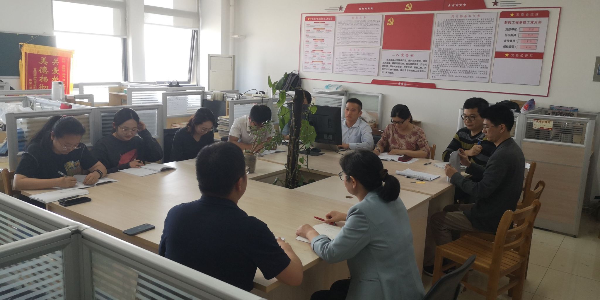 自活动启动以来,党支部每月定期举办集中学习研讨,深入系统学习党的二十大和二十届三中全会精神、全国教育大会精神、习近平总书记考察安徽重要讲话精神等。全体党员围绕党建引领专业发展、产学研深度融合以及课程体系与课程思政的优化结合等核心议题,深入研讨如何立足岗位,将学习成果转化为实际行动。经过大家集思广益,结合专业建设思路,党支部决定聚焦产学研方向确定、课程体系构建及实践教学体系改革、基础教育开拓等方面,积极探索一条具有系部特色的党建引领专业建设新路径。