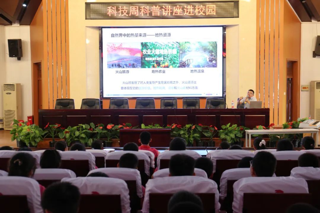 在面向五年级学生的讲座中,王方阔教授以“热量的来源及应用”为主题,从自然现象切入,结合火山喷发释放地热、太阳能热水器集热等生动案例,用通俗易懂的语言解析热量产生原理。面对孩子们充满童真的提问,王方阔教授通过趣味互动实验引导同学们观察身边的科学现象,现场气氛热烈。