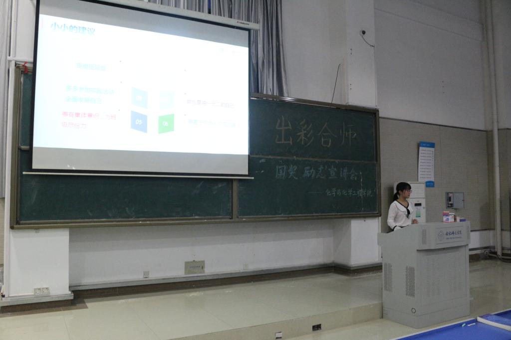 此次国奖、励志个人事迹宣讲会的成功召开,增强了学生的荣誉感,建设优良浓厚的学风,促进学生的个人发展,为日后学习工作的顺利进行打下坚实基础。(化学与化学工程学院:原嘉清 胡月)