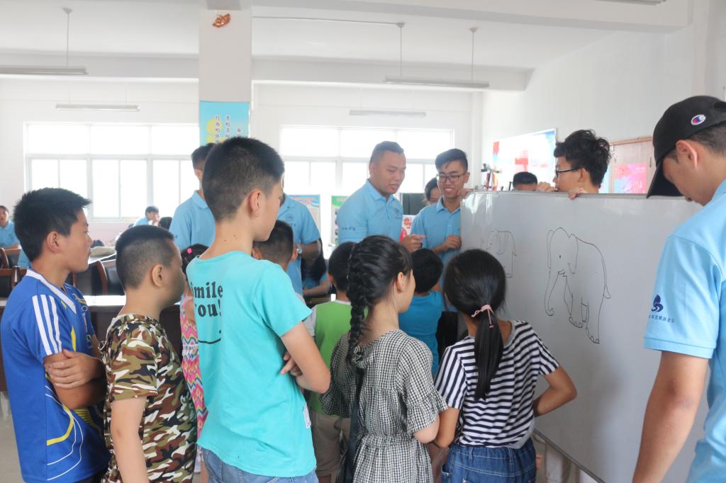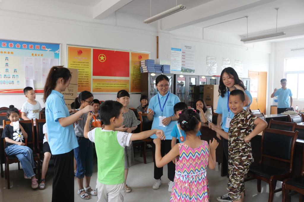 开班首日,小先生们、小学员分别做了自我介绍。在小先生作了自我才艺展示后,小先生带领小学员们玩了“抓手指”、“植物动物”和“手拉手小游戏”等三个游戏。