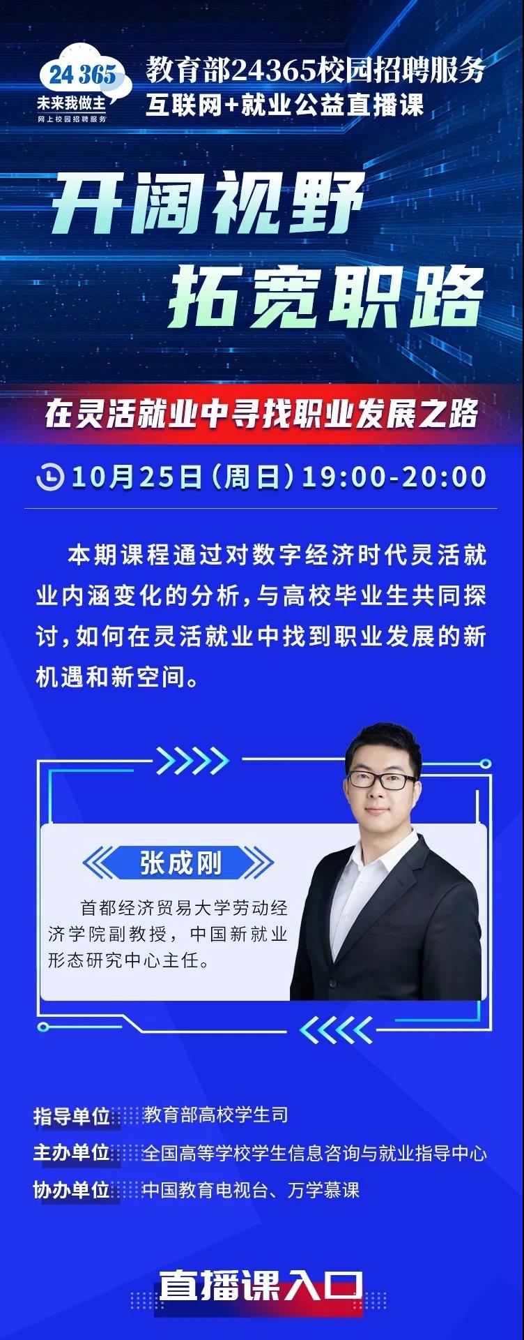 “应对疫情 就业服务”系列之五十五:教育部24365就业公益直播课:开拓视野 拓宽职路——在灵活就业中寻找职业发展之路
