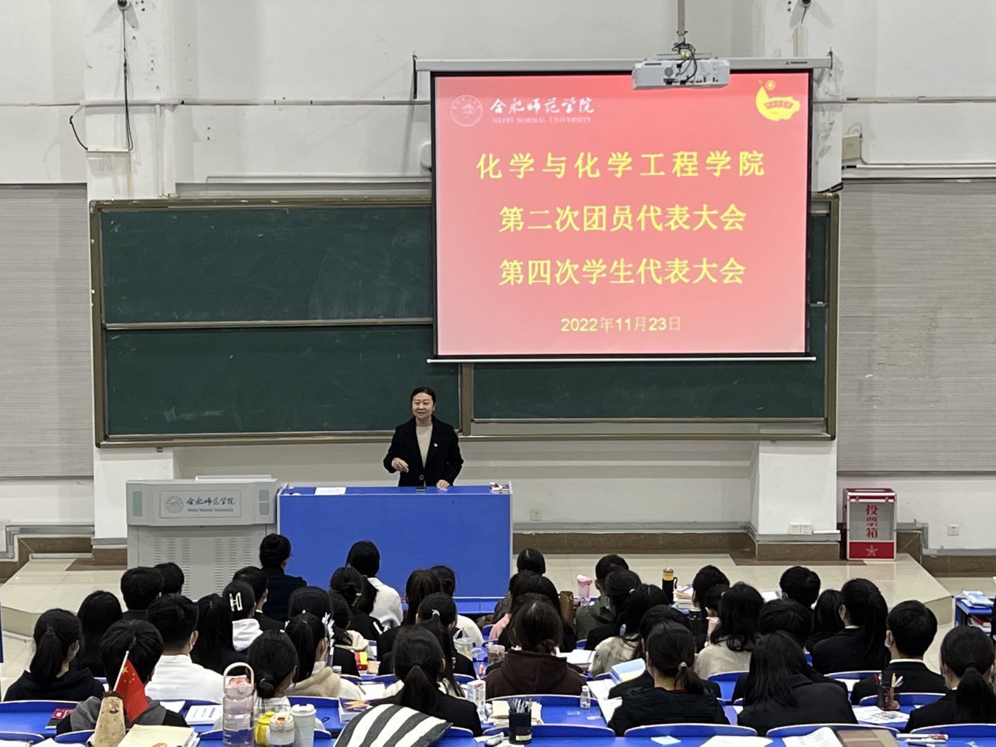 本网讯 11月23日,共青团十大买球的正规网站化学与化学工程学院召开第二次代表大会暨第四次学生代表大会在锦绣校区逸夫楼西节1教室召开。该学院党委书记李红、副书记徐祝青出席会议,校团委社团管理部副主任姚瑶、分团委书记张晖、副书记(兼职)陈蕾、学生会主席团成员、102名团学代表参加会议。大会由院学生会主席团轮值主席张雅露主持。