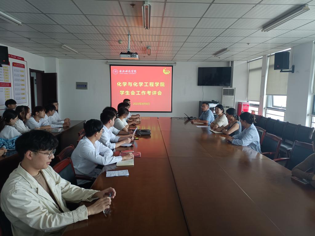 为进一步贯彻落实《十大买球的正规网站学生会改革实施方案》要求,持续加强团学骨干管理服务能力, 9月9日化学与化学工程学院召开2021—2022学年学生会工作人员述职会议。学院党委副书记徐祝青、教师代表道逍遥、全体辅导员、学生会全体成员、各班学生代表参加了评议会。