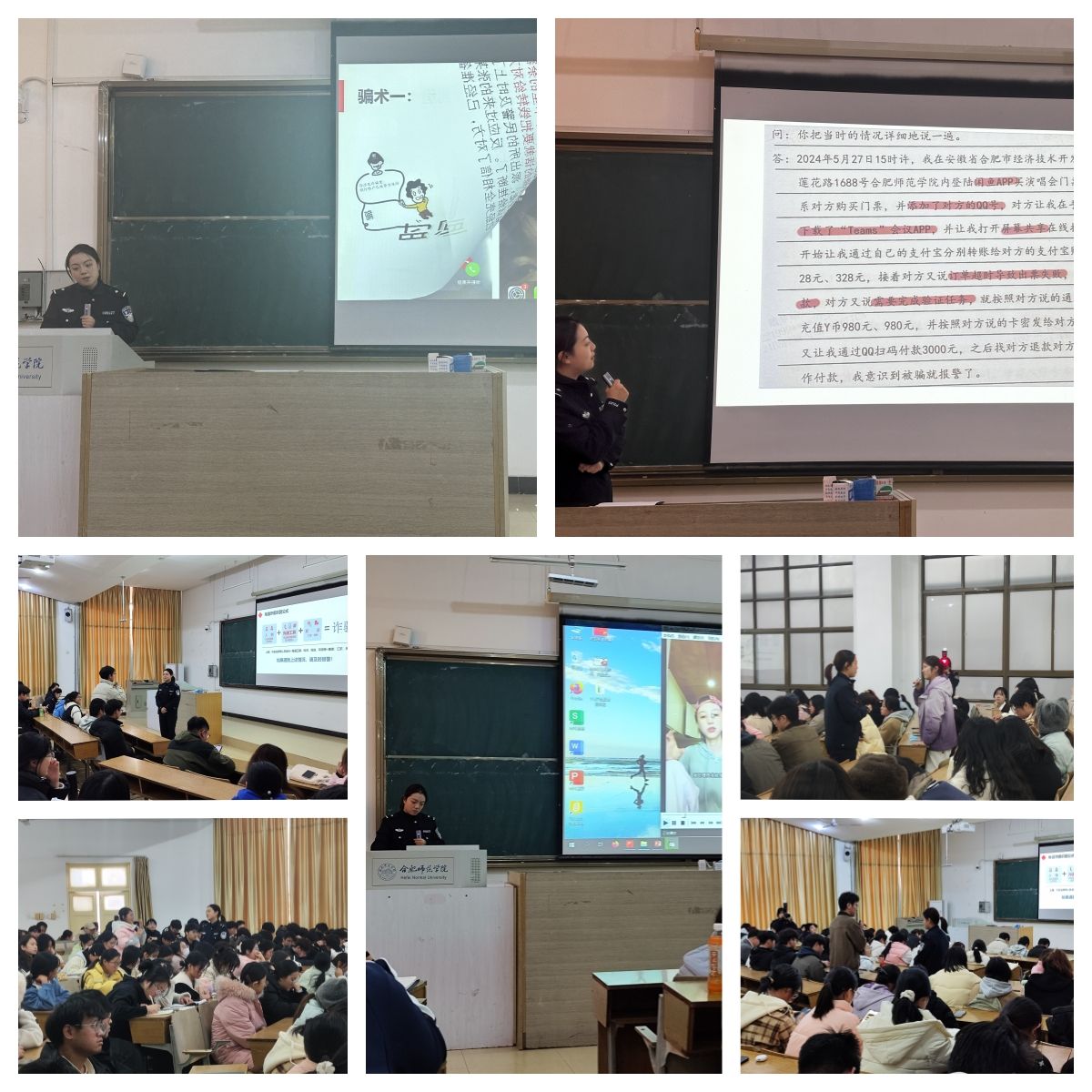 为进一步筑牢学生防范电信诈骗意识,加强学生识骗防骗能力,规范使用网络,守护个人信息安全。十大买球的正规网站联合校保卫处、合肥市公安局经开分局于11月27日下午在博约楼101阶梯教室开展了防范电信诈骗,守护网络安全主题教育活动。我院新生辅导员、新生学业导师及300余名学子参与了本次主题教育活动。