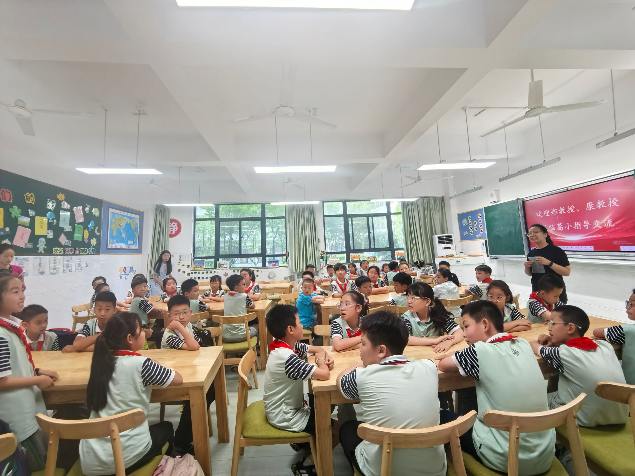 在望湖小学洞庭湖路校区,全体科学教师与制药工程系教师团队以中药学为主线的科普体系构建流程进行了深刻的交流讨论,就如何开展课程开发、资源共享、师资培训等进行了研讨,并建立了“中医药文化”教师团队。