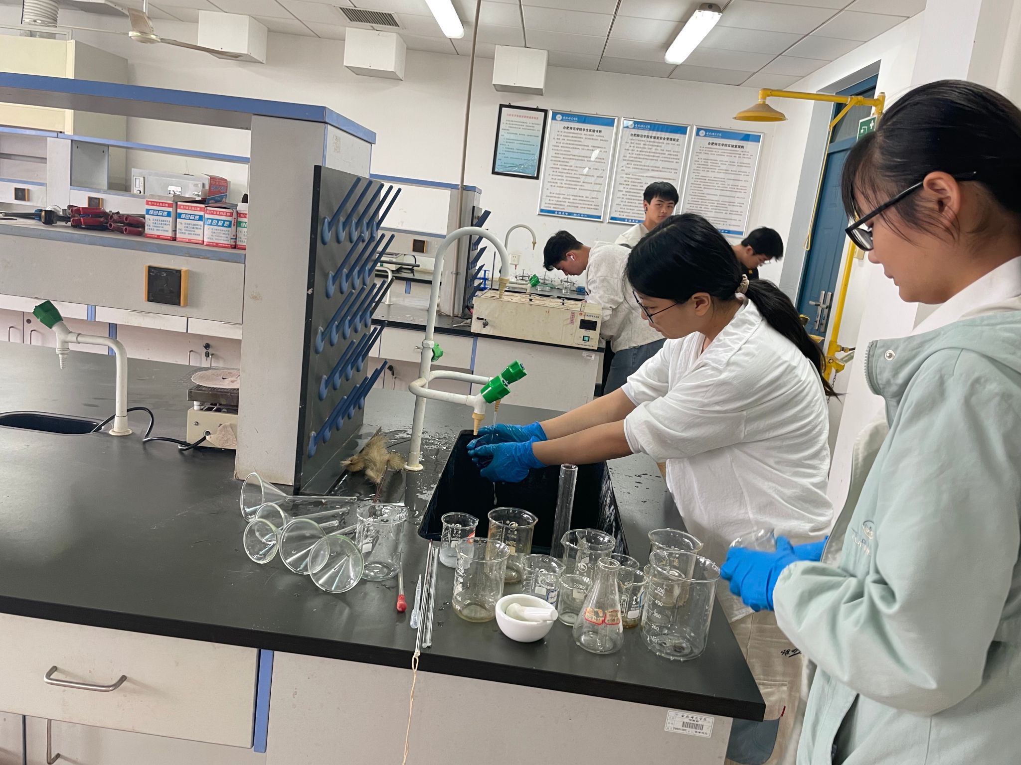 同学们在学院实验中心朱言宇老师带领下,分工协作对无机基础实验室和制药工程基础实验室进行大扫除,以“显微镜”标准开展全方位清洁整理。各小组成员齐心协力,合理整理归纳物品,清扫卫生死角,消除安全隐患。从透亮玻璃到整齐的实验台,从光洁地面到有序的仪器摆放,劳动热潮让每处角落焕发新生。劳动创造美好,整洁的环境让学习更舒心。躬身实践中,劳动意识与责任担当在沾满泥土的指尖生根发芽。